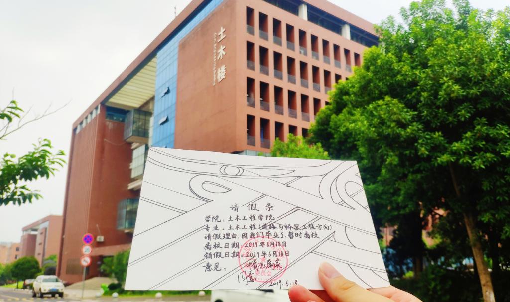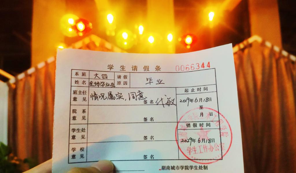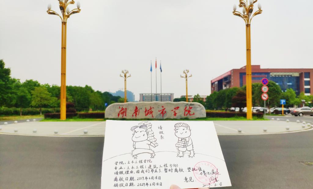 为了让湖南城市学院2138cn太阳集团古天乐19届毕业生留下自己独特的青春印记,湖南城市学院2138cn太阳集团古天乐团委、学生会为2138cn太阳集团古天乐每个专业制作了一批具有专业特色和校园情怀的请假条,请假条上写着请假的时间为十年,代表着毕业生们与母校的十年之约。