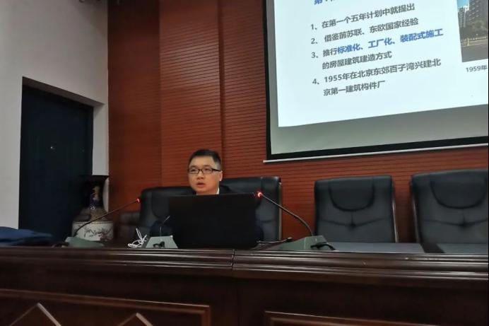 讲座伊始,张再华副教授向同学们介绍曹志良专家,并对专家的到来表示热烈欢迎。随后,曹志良专家向同学们介绍了国内外建筑工业化发展现状,帮助同学们了解装配式建筑的发展历程、发展趋势。接着,曹志良专家展示了装配式建筑评价标准的编制原则和评价内容,并讲解了装配式建筑设计发展趋势,通过讲解实例,帮助同学们了解了建筑设计的两个发展方向。