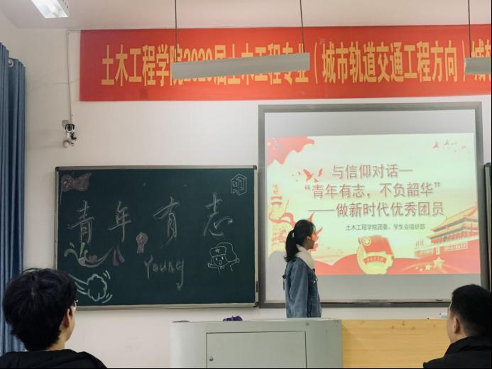 班会最后,由团委副书记杨帅对本次会议内容进行总结,并再次强调新时代青年精神,提出新时代青年应有远大理想,时刻牢记自己的时代使命。杨帅提出,希望全同学一起努力、共同进步,不断开拓进取、锐意创新,成为一名优秀的共青团员。至此,本次班会圆满结束。