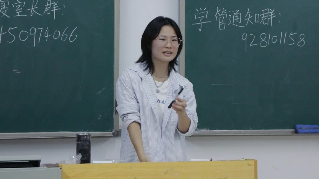 宋可仪结合一些同学的受骗案例,讲述入寝推销的骗局,提醒同学们要擦亮眼睛,谨防诈骗;讲解了关于寝室已损坏物件的报修方法,并对劳卫检查、学风检查、院内自检的注意事项进行了介绍和强调,同时对同学们就相关事项的疑惑进行了详细解答;介绍了违纪帮扶和帮扶条件,强调检查人员与同学们要互相尊重、互相理解。