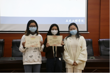 杨刘杰根据班级考核和院内部门考核评选条例,宣布先进班级和先进部门名单。院党委副书记黄智、团委书记谢文静上台颁奖并合影留念。