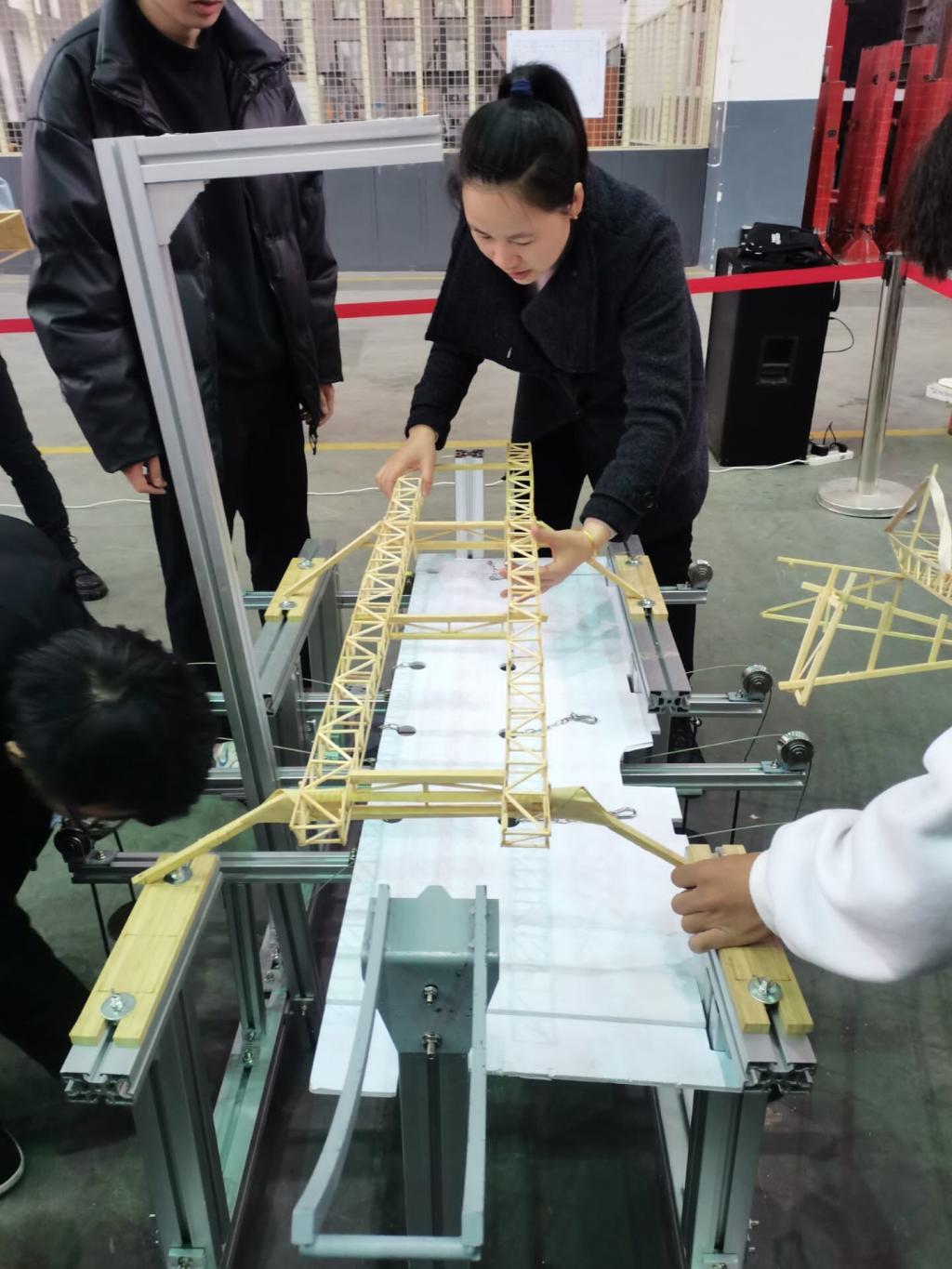 赛前由主持人介绍到场的老师及大赛内容后正式开始。首先同学们将做好的模型放在加载台上进行加载,由老师进行评分并提出后续改进意见。有的同学加载失败后没有气馁而是向老师询问相关知识让其指出模型中的错误,为下次的大赛打好基础。大赛结束后会长王雨河进行发言,他提到本次大赛由于事先宣传不足,导致部分学院未了解该赛事。其次比赛规则未详细解释导致部分模型不符合要求无法加载而稍有遗憾。但此次大赛培养我校大学生科技创新能力及动手能力,激发了同学们的学习热情,至此本次结构模型竞赛取得圆满成功。