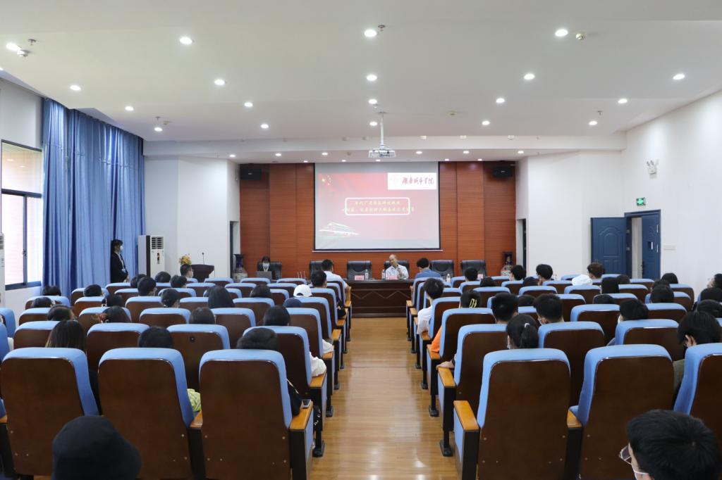 报告会主讲嘉宾为原湖南城建高等专科学校党委书记、校长廖代广先生。院党委副书记、关心下一代工作委员会主任黄智主持会议。院党委书记郭白泉、湖南城市学院退休模范教师、关心下一代委员会副主任汪惠民先生、院团委书记谢文静、院学工办李贵老师等出席会议。学院入党积极分子代表、党员代表参加报告会。