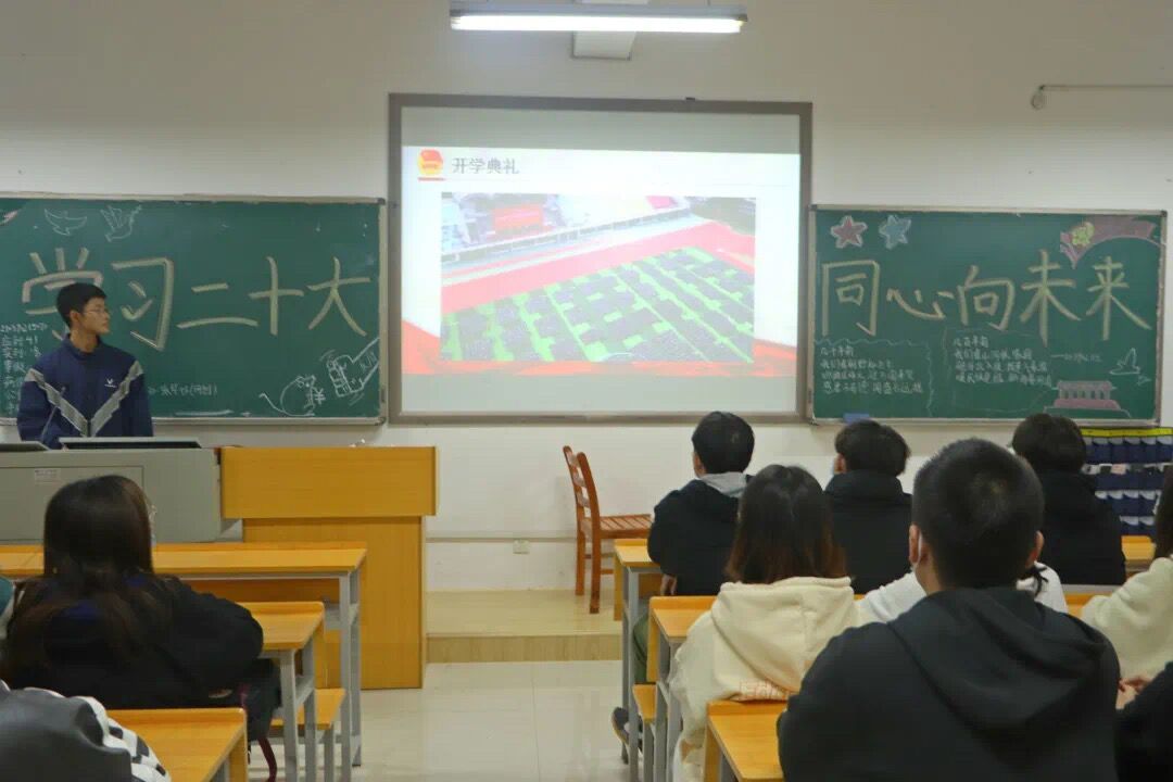 凝心聚力擘画复兴新蓝图,团结奋进创新历史新伟业。为学习党的二十大精神,了解中共二十大承担着的使命以及党的最高理想和最终目标,2138cn太阳集团古天乐分别于2022年10月28日19:00、10月30日19:00在土木楼开展“聚焦二十大,同心向未来”十月份团课活动。2020级、2021级、2022级全体同学参与本次团课活动。本次活动由各班代表主持。