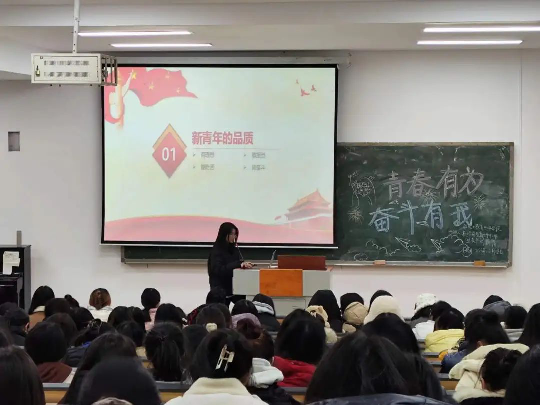 主讲人首先讲解了新青年品质,通过分享十佳青年的案例,通过十佳青年的获奖事迹,学习他们身上的可贵精神以及优秀品质,以此给同学们展现新时代青年的可贵特质,以此勉励新时代青年要成为拥有有理想,敢担当,能吃苦,肯奋斗的青年,从而让同学们更加全面地了解身为新时代青年应当具备的优良品质。
