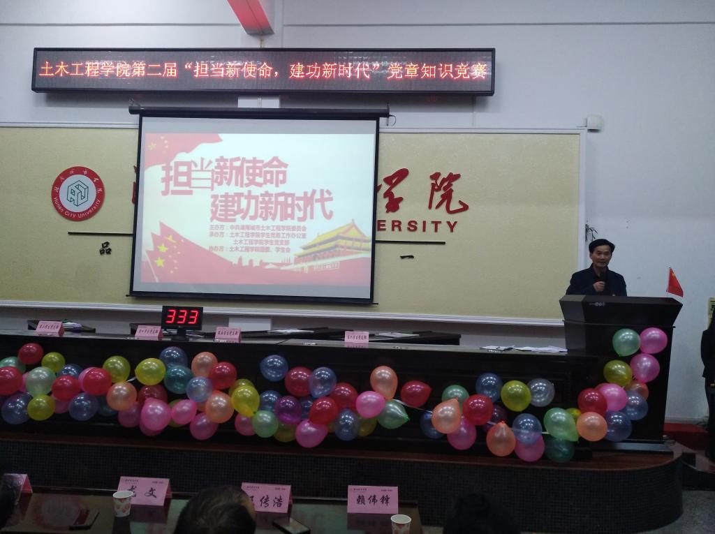 在全国上下特别是广大青年掀起学习贯彻习近平总书记五四运动100周年纪念大会上的讲话精神热潮之际,2019年5月7日晚,由中共湖南城市学院2138cn太阳集团古天乐委员会主办,院学生党务工作办公室、学生党支部承办,院团委、学生会协办的第二届“担当新使命,建功新时代”党章知识竞赛决赛活动,在电信楼视频会议室圆满落幕。