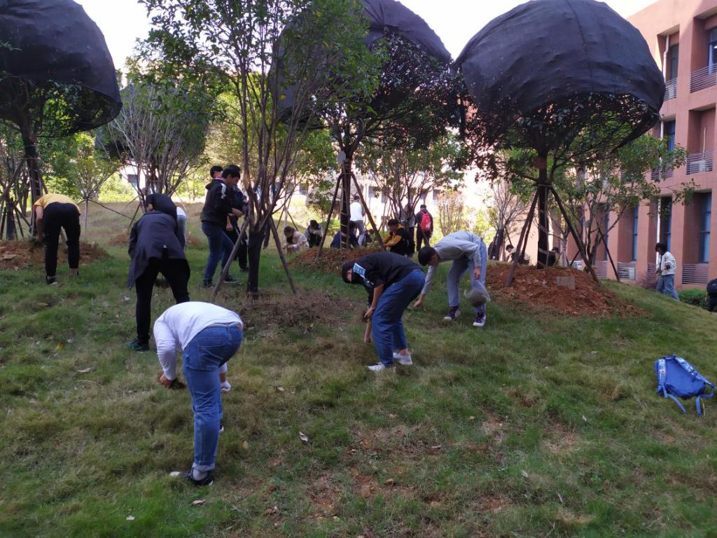 本次志愿活动共七组,各个小组负责不同区域。划分好区域后,各组组长带领组员去到各自负责区域开始行动。同学们不怕脏不怕累,井然有序、默契地配合着,有的拔除杂草,有的拾捡垃圾,有的运输垃圾,心往一处想,劲往一处使。虽然头顶烈日,汗流浃背,但工作热情却只增不减!众人拾柴火焰高,经过一个多小时的努力,土木楼周围的环境美化工程圆满收工!