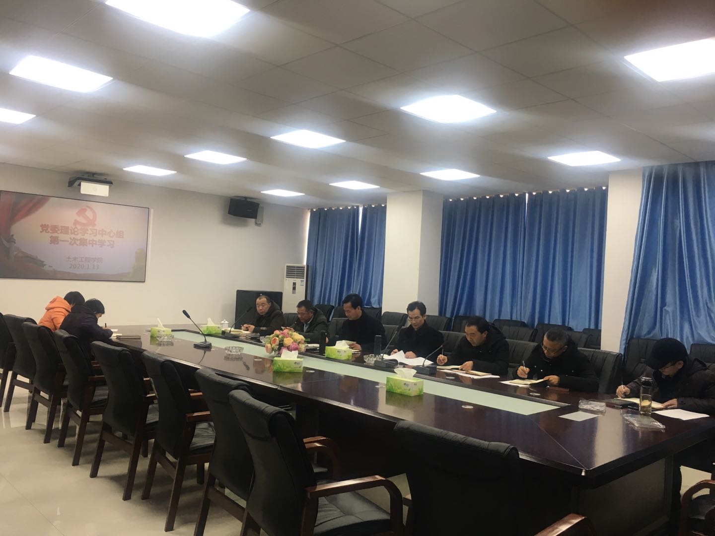 2020年1月13日下午,院党委书记郭白泉在土木楼722会议室主持开展了院党委中心组第一次集中学习,中心组全体成员参加。