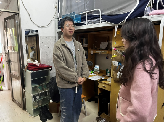 (上图为支部书记梁倚睿同志走访党员寝室)
