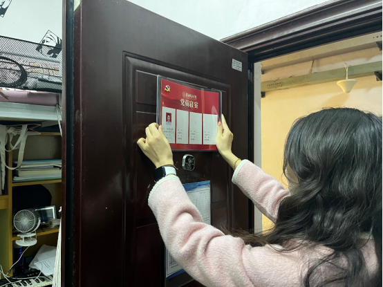 当天,在学生寝室,支部举行了“党员寝室”挂牌仪式,支部书记梁倚睿同志为党员寝室挂牌并走访党员寝室。