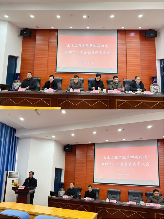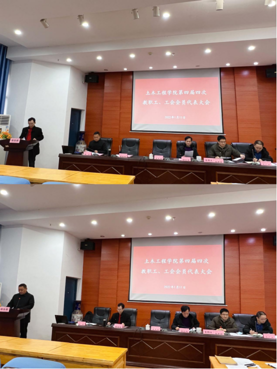 2022年1月11日上午,学校在土木楼828大会议室隆重召开第四届四次教职工、工会会员代表大会(简称“双代会”)。学校党委委员、副校长袁志成出席会议并讲话。全体院领导、教职工、工会会员参加会议。会议由院党委纪委委员、副院长孟新田主持。