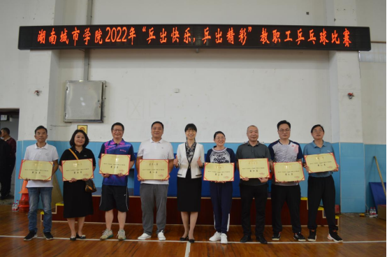 4月23-24日,2022年湖南城市学院迎五一“乒出快乐,乒出精彩”教职工乒乓球赛在体育训练馆展开激烈争夺并圆满落下帷幕,2138cn太阳集团古天乐分工会教师代表队“土木乒团”经过小组淘汰赛、复赛、决赛,一路过关斩将,所向披靡,勇夺桂冠。