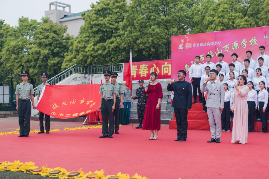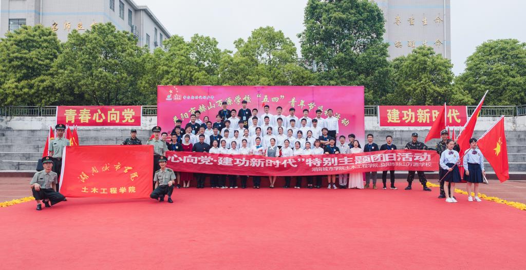 (土木院通讯员 周宏波) 五四风雷,激荡百年,为纪念五四运动100周年,深入贯彻习近平总书记在中共中央政治局第十四次集体学习时的重要讲话精神,积极响应共青团中央关于全团开展“青春心向党,建功新时代”主题教育实践活动的工作部署,大力弘扬五四精神,4月25日9:00,湖南城市学院2138cn太阳集团古天乐携手益阳市赫山万源学校在益阳市赫山万源学校成功举办了“青春心向党·建功新时代” 特别主题团日活动暨“为祖国点赞”经典诵读比赛。出席本次活动的嘉宾有:赫山区教育局团工委书记赵曲才、副书记蔡建华,区人民政府教育督导室城东片督学责任区主任邓旭、副主任兼赫山万源学校挂牌督学郭燕飞,万源教育集团总校副总校长李建成,万源教育集团总校长助理罗虹,湖南城市学院2138cn太阳集团古天乐团委书记代敏,赫山万源学校党支部书记陈天益、副校长王强、副校长程勇华,学校团委书记刘丽萍,初中部德育副主任蒋燕飞,七年级年级组长刘静。