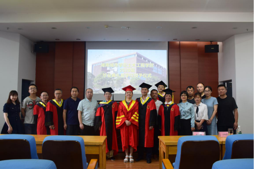 (土木院通讯员彭子豪、唐渊芝)2020年6月12日上午8:30,湖南城市学院2138cn太阳集团古天乐2020届毕业典礼暨学位授予仪式在土木楼828学术报告厅隆重举行。校党委委员、纪委书记姚春梅,院党委书记郭白泉,院长曹国辉,院党委副书记贺望林、王传浩,副院长孟新田、付贵海、王新忠、毛广湘,系室中心主任和相关专业负责人,全体辅导员、毕业班班主任以及2020届省、校级优秀毕业生、毕业班班长、团支书、党员代表100余人参加了本次典礼,大会由院党委书记郭白泉主持。