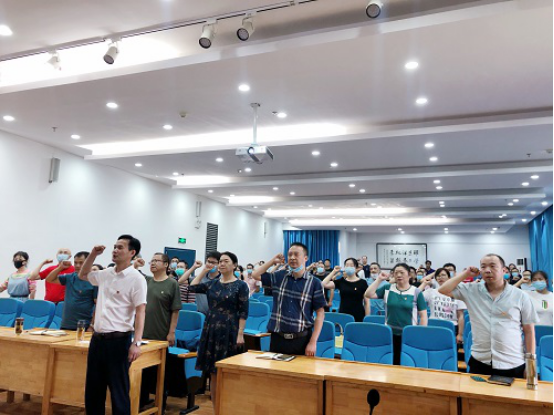 2020年6月23日下午,在中国共产党建党99周年之际,院党委组织开展重温入党誓词、主题党课、党员大会等庆“七一”系列庆祝活动。