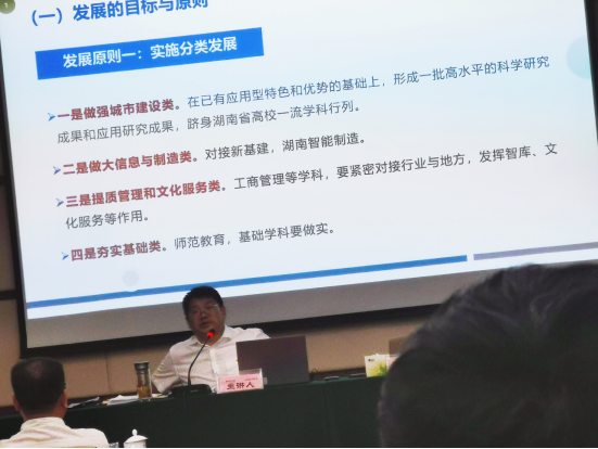 益阳市委党校刘纯一教授主讲了《抓作风建设,促思想提升》的辅导报告;学校党委书记罗成翼作了《全面推进“三全育人”综合改革,扎实做好“十四五”规划编制》的主题报告;校长李建奇作了总结报告并对秋季开学工作进行了部署安排;全体校领导就分管工作在大会上回顾了“十三五”成就并畅谈了“十四五”工作思路;各二级学院(包括继续教育学院、大学英语教学部、国际教育学院)汇报了“十三五”工作总结和“十四五”发展规划。