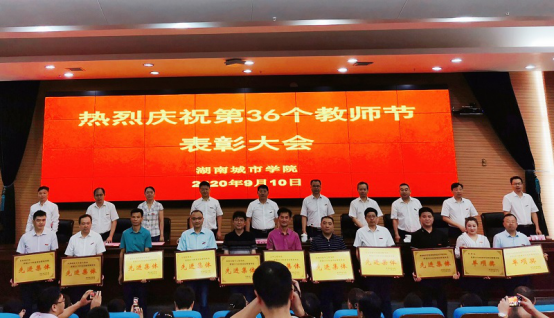 2020年9月10日,在学校庆祝第36个教师节表彰大会上,学院党委书记郭白泉代表学院领取了“湖南城市学院2019年度目标管理考核先进集体”奖牌,这是继“七一”表彰大会学院党委获得学校“2019-2020年度优秀二级党组织”荣誉以后再次获得“先进集体”大奖,党建、行政工作喜获双丰收。