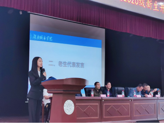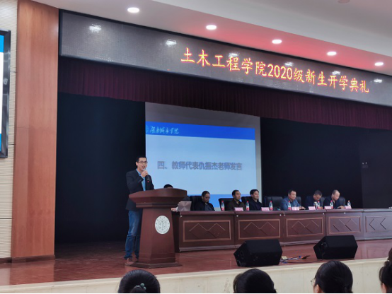 老生代表1903702班--贺沐祖同学、新生代表2003901班--王国栋同学、教师代表--水利水电工程系副主任仇振杰博士先后发言。他们分别表达了对新同学的热烈欢迎与衷心祝贺,对大学学习生活的规划与憧憬,对未来人生的美好期盼与祝福。