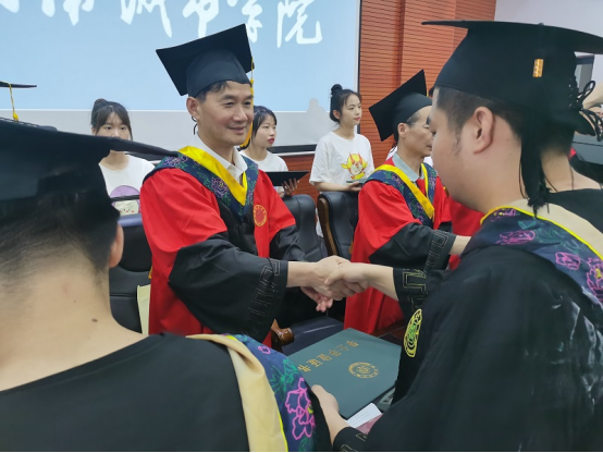 教师代表陈宏伟博士为毕业生送上温馨的祝福。他将同学们比作工程材料,希望同学们能培养吃苦耐劳的精神,做到“抗压、抗弯、抗拉、抗震、抗打击”,也希望同学们能继续保持优秀品格,此次启程繁华似锦,再相逢能够成为栋梁之才。
