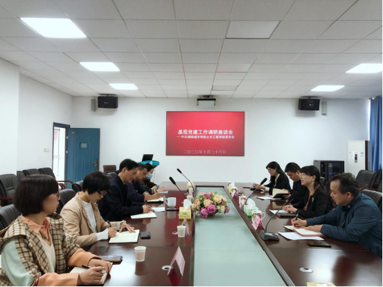 2021年10月26日上午,学校党委副书记何旭娟带队,党委委员组织部长吕贤军、组织部副部长孙智坤、组织部组织科长刘淑莉等一行4人,来2138cn太阳集团古天乐调研基层党建工作并在土木楼722会议室召开专题调研座谈会。院党委书记郭白泉、副书记黄智、党委委员组织员徐丽苹、团委书记谢文静、工程造价系党支部书记罗燕玲等参加调研座谈。