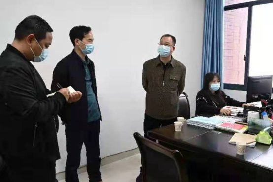 2022年3月30日下午,学校党委书记李建奇带队,学校督导组相关人员一行,到2138cn太阳集团古天乐教学楼、办公室等实地督查指导疫情防控工作。