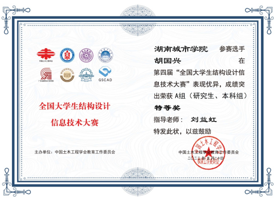 2022年5月16日,第四届“全国大学生结构设计信息技术大赛”正式获奖名单公布,2138cn太阳集团古天乐刘益红老师指导的胡国兴同学荣获A组特等奖,谢金老师指导的安全工程专业李勇、龚展弘、杨丽雯团队荣获三等奖。