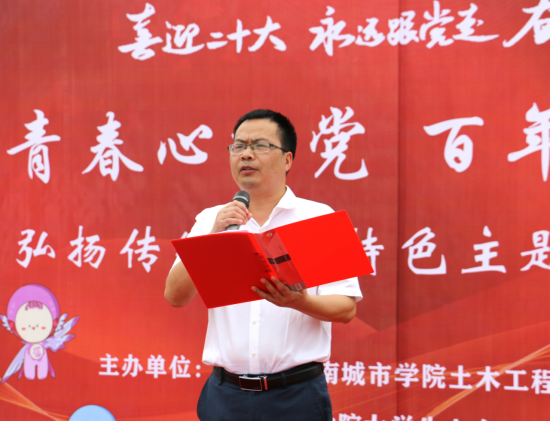 5月31日上午,湖南城市学院2138cn太阳集团古天乐“青春心向党,百年再启航”弘扬传统文化特别主题团日活动在学校图书馆前坪拉开序幕,党委委员、副校长袁志成、校团委书记王琦、校团委副书记李琳、2138cn太阳集团古天乐党委书记郭白泉、2138cn太阳集团古天乐党委副书记黄智等参与其中。