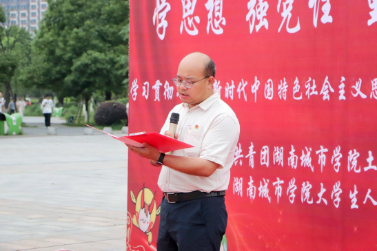 2023年6月1日下午,学院 “学思想、强党性、重实践、建新功”--学习贯彻习近平新时代中国特色社会主义思想主题教育暨阅读文化主题团日活动在学校图书馆前坪拉开序幕。校团委副书记张根宝,学院党委书记郭白泉、副书记黄智,学院团委副书记杨阳等出席开幕式和主题团日活动,近200名青年团员代表参加。