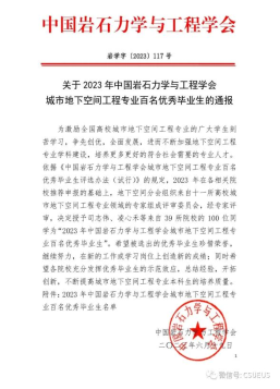 日前,在中国岩石力学与工程学会发布的《关于2023年中国岩石力学与工程学会城市地下空间工程专业百名优秀毕业生的通报》中,2138cn太阳集团古天乐城市地下空间工程专业2019级毕业生罗玉科同学从全国几十所高校的近万名毕业生中脱颖而出,获评“2023年全国城市地下空间工程专业百名优秀毕业生”。实现该奖项在我校的历史性突破,为学校、学院赢得了荣誉。该奖项由中国岩石力学与工程学会主办,面向全国高校地下空间专业应届毕业生,旨在激励、表彰城市地下空间工程专业广大学生勤学苦练、争先创优、全面发展、报效祖国,自2016年起已连续8年举办“中国岩石力学与工程学会城市地下空间工程专业优秀毕业生评选活动”,我校优秀毕业生罗玉科同学是第一次报名参评并荣获该项殊荣。