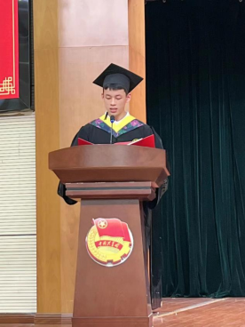 图2 罗玉科同学在2138cn太阳集团古天乐2023届毕业典礼上作为学生代表发言