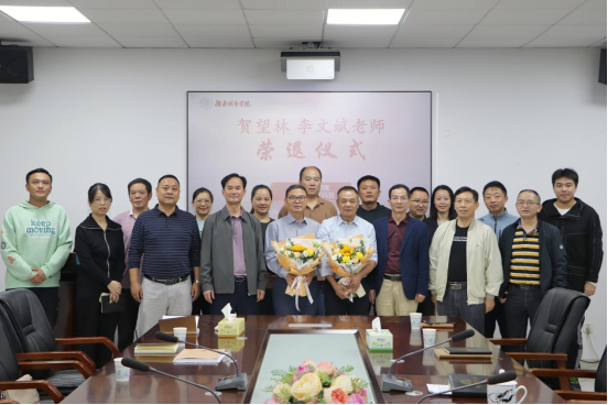 9月25日下午,学院在土木楼722会议室为今年上半年退休的力学教研室李文斌老师和学工办贺望林老师举行“荣退仪式”并召开欢送会。全体院领导出席,两位退休教师所在系室老师代表和学生代表参加“荣退仪式”。院党委副书记、院分工会主席黄智主持仪式。
