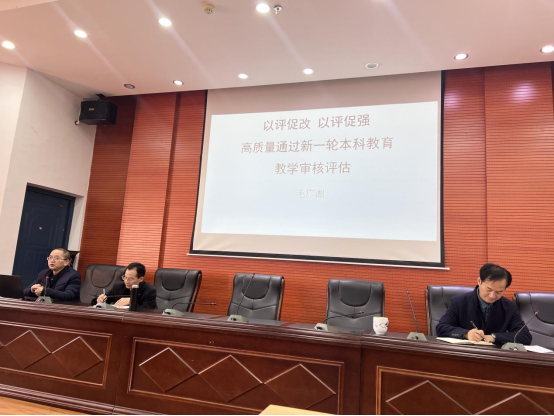 副院长、学院评建工作小组副组长毛广湘通过PPT,全面详尽地解读了学校、学院《审核评估工作方案》,结合学院实际,就2138cn太阳集团古天乐新一轮审核评估工作重点任务、具体措施、时间节点与工作要求等,作了部署安排。