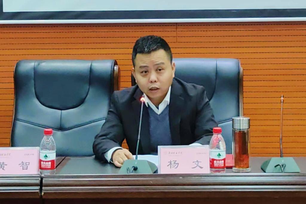杨文以“结合自身工作和生活经验,谈谈应届毕业生如何做好职业规划”为题,讲述了自身求学、工作实际情况和心路历程,介绍了当前业内形势与背景并分享了创业经验。杨文表示,当代大学生应践行马克思主义的根本观点“实事求是”,将其应用到学习、工作、生活、事业中,提升综合素质、拓宽视野格局。临近尾声,他赠予与会学生八字箴言:诚信、勤奋、舍得、知足,希望同学们在今后的人生中修言、修行、修心、修身。