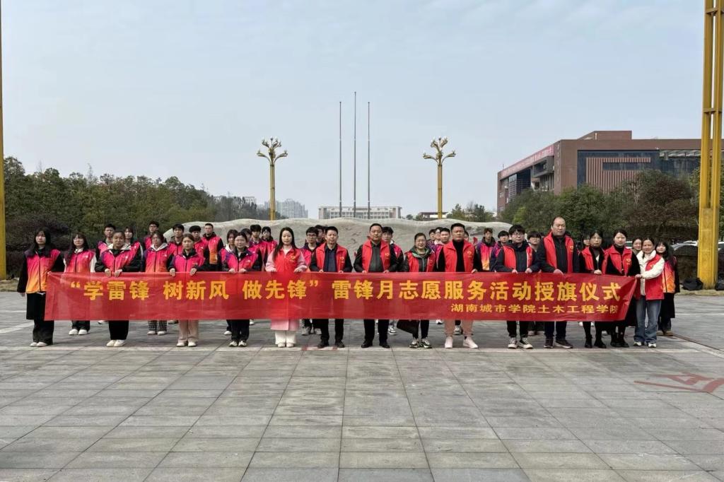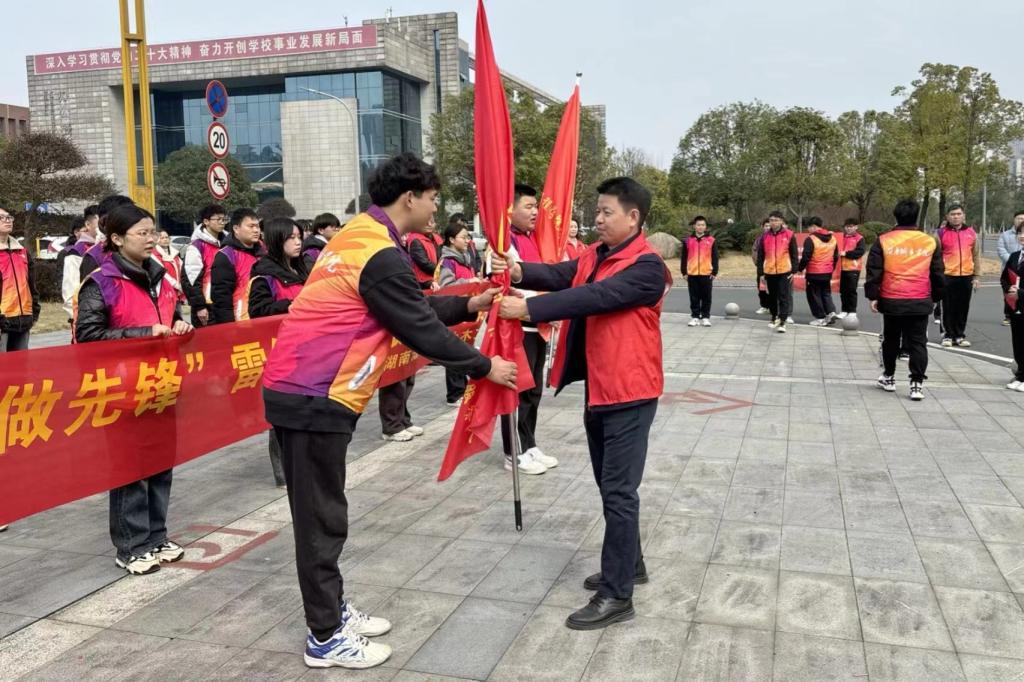 2024年3月7日14:30,为贯彻落实习近平总书记对深入开展学雷锋活动作出的重要指示精神,让雷锋精神在新时代绽放更加璀璨的光芒,由学院团委主办的“学雷锋 树新风 做先锋”雷锋月志愿服务活动授旗仪式在学校南门广场举行。学院党委书记熊创贤、党委副书记黄智出席仪式,学院学工办全体老师、院团委学生会代表和青年志愿者代表参加仪式。