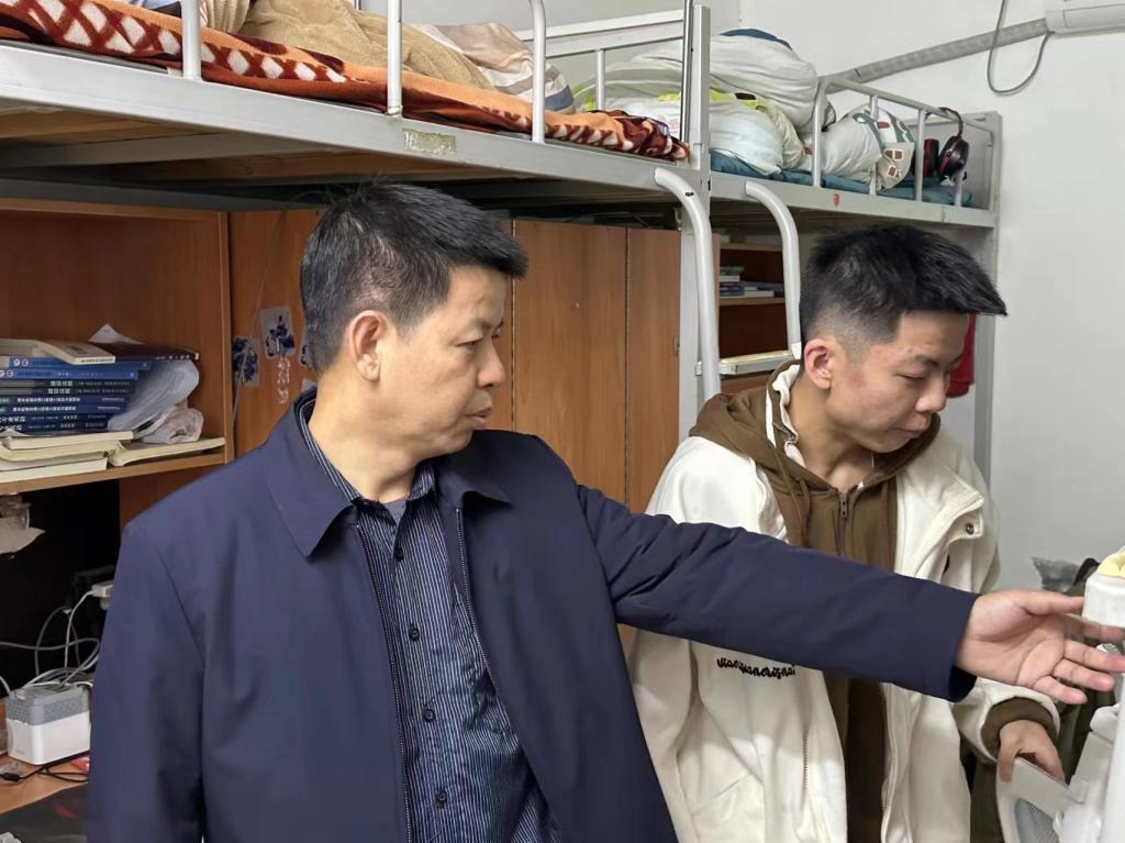 熊创贤与同学们亲切交谈,对宿舍内务、卫生状况、宿舍的学习、生活情况提出整改意见,做到勤打扫、勤通风、勤消毒,希望同学们养成良好卫生习惯,及时清理宿舍垃圾,做拥有高素质文明素养的大学生。同时,熊创贤表达了学院对同学们的关心与支持,他深情嘱咐同学们保持良好心态、保证身体健康,鼓励同学们规划学业目标、充实大学生活,并由衷希望2138cn太阳集团古天乐学子能够重视本次迎检,养成良好生活习惯、涵养高尚道德品质,为巩固国家卫生城市创建成果贡献自己的力量。