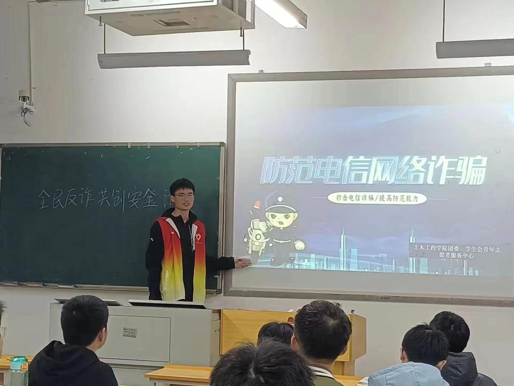 创新宣讲形式,赋能全民反诈。该院青年志愿者们以“全民反诈,共创安全消费环境”为主题,通过幻灯片放映和问卷调查等形式进行了志愿下班宣讲,科普了新型诈骗手段和案例,增强了防范意识,营造了全民反诈的良好氛围。活动现场,青年志愿者们推陈出新,丰富宣讲方式,充分调动了场下观众的积极性,赢得了同学们的阵阵掌声和一致好评。