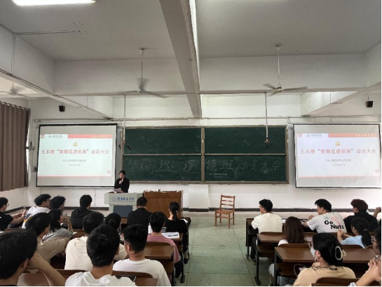 会议伊始,主持人周宇涵热情介绍了到场老师,并严肃强调了会议纪律。在校园文明建设持续深入推进的大背景下,此次动员大会肩负着重要使命,它既是一次详细的工作部署会,更是一场凝聚各方力量、激发责任担当的动员会。作为知识传播的神圣殿堂,土木楼本应是清新、健康的学习场所,但吸烟现象却给这里带来了诸多负面问题。烟雾缭绕不仅严重危害师生的身体健康,还让原本整洁的环境变得杂乱,禁烟行动刻不容缓。