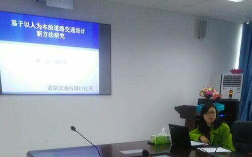 周老师首先言简意赅地讲述了“基于以人为本的道路交通设计新方法研究”这个主题的提出。然后周老师就从研究的目的和意义出发,深入浅出的把研究的目标及内涵表达出来。关于研究的路线老师也做了相应的分析,实际过程如下:首先从人性化和交通设计两个方面的概念出发,将人性化的思想注入到道路交通设计中来;其次分析城市道路人性化交通设计的内涵及目的。然后分别从城市道路交叉口和路段两个方面对人性化交通设计方法进行分析,并进行综合评价。