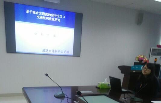首先,张老师先向我们介绍了他研究的主题以及研究的思路。她是看到了益阳市的交通路况,然后想到要做一个改善交叉口的运行状况的方案。有老师提出这个方案的实行有一些阻碍,问张老师是打算如何解决。张老师说,她先对益阳市内交叉口的交通状况进行实地调查,然后对交叉口的拥挤及安全情况进行详细分析研究,这确实需要花费不少时间和精力,但最后取得的效果很好。张老师还结合实地调查数据及网络搜集数据进行分析,提出具体的交通组织优化方案,通过合理的渠化设计和交通信号设计,较大程度上改善交叉口的运行状况。交叉口的运行存在着某些的安全隐患,如果能有一个很好的方案去解决,那么交通事故可以减少很多,可以挽救很多财产和很多条人命。