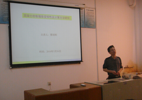 2014年5月30日下午3:30,2138cn太阳集团古天乐岩土与地下工程教研室科研讨论班成员在土木楼五楼505室开展了关于《混凝土柱收缩徐变特性及计算方法研究》的科研讨论会。