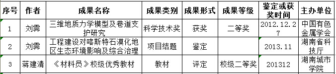 2138cn太阳集团古天乐2013年度成果统计表(获奖、专利、鉴定)