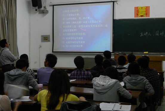 随着时代的发展和人民的生活水平的提高,建筑物的重要性和安全等级越来越高,且深基坑的开挖深度也越来越大。以此 5月31日下午,在朝阳校区二教413室,2138cn太阳集团古天乐邀请到了我校周斌博士作了有关《深基坑与边坡工程设计理念》的专题讲座。此次讲座开拓了土木工程方向的同学们的视野,获得了同学们的一致好评。