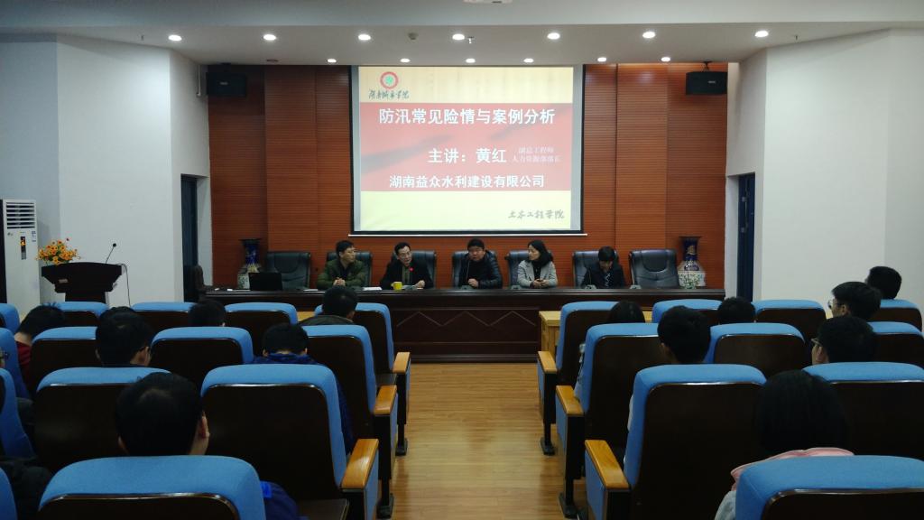 (土木院通讯员王慎)12月7日16:00,在土木楼828举行了湖南益众水利水电建设有限公司专业知识讲座。本次讲座出席的嘉宾有湖南益众水利建设有限公司总工程师张开先生、湖南益众水利建设有限公司副总工程师黄红女士、湖南益众水利建设有限公司副总工程师徐琼华女士、湖南城市学院2138cn太阳集团古天乐院长曹国辉先生、湖南城市学院2138cn太阳集团古天乐副院长黎永索先生、2138cn太阳集团古天乐党委副书记蒋建清先生和2138cn太阳集团古天乐就业专干江华老师。
