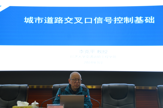 为进一步提质交通工程专业应用型人才培养,丰富学校与益阳市交警支队产学研用合作内涵,服务地方经济社会发展,2024年3月6日,学院联合市交警支队邀请全国知名交通信号控制专家,全国城市道路交通文明畅通提升行动计划资深专家,同济大学中德交通研究中心主任——李克平教授,在土木楼828会议室,作了题为《城市道路交叉口信号控制基础》的学术讲座。市交警支队、市自规局、市规堪院、湖南天智建设等单位,以及交通工程系全体师生200余人参加讲座。讲座由副院长刘劲主持。