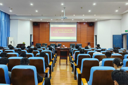 龚超龙就“后土木时代学生如何找到敲门砖”,围绕行业动态、就业建议、期望寄语三个方面展开论述。他深入剖析了行业现状,运用湖南省经济数据、湖南省各市中标业绩等大量翔实数据指出当前土木行业竞争激烈的事实,点明了业内技术创新的发展方向,激励与会学生保持创新精神,提升实践能力。随后,他整理出土木学生常见就业单位,针对不同就业方向进行指导并推荐了应届生就业相关产业。最后,龚超龙深情寄语在场学生:心怀家国,大力弘扬创新精神;放眼未来,努力提升创新能力;脚踏实地,积极投身创新实践。