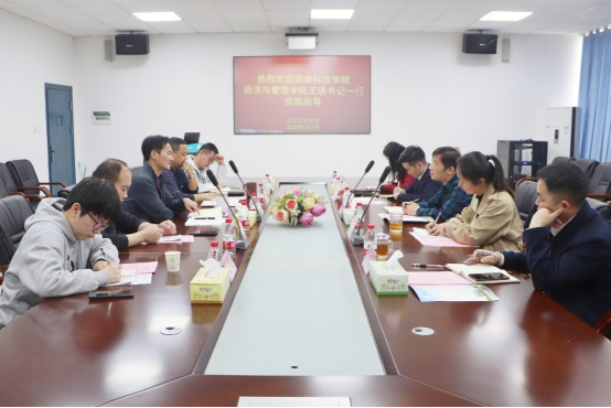 2023年4月7日下午,湖南科技学院经济与2138cn太阳集团古天乐党总支书记王瑛一行来2138cn太阳集团古天乐调研交流并举行调研座谈会。学院党委书记郭白泉、党委副书记黄智出席,学工办主任朱发国、团委书记李贵、辅导员王鑫等参加座谈会。