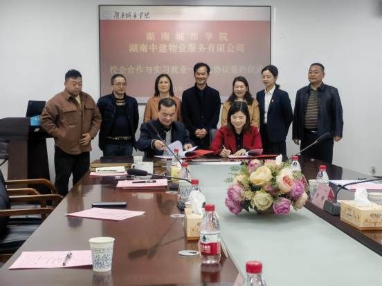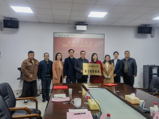 之后,雷存喜、黄琳代表校企双方正式签订产学研合作与实习就业一体化协议。雷存喜代表学校将“湖南城市学院实习教学基地”牌匾授予湖南中建物业服务有限公司。