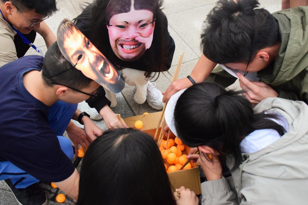 在游戏中,六十个玩家被分成六组,每组共十人。首先进行的是暖场游戏,玩家通过自我介绍,让气氛活跃起来。随后,玩家参加了“选特征人”,“团体跳绳”,“乒乓接力”“蒙眼夹球”等一系列的小游戏。游戏胜利的组有心理部精心准备的小礼品,而失败的组会要接受趣味十足的惩罚小游戏。在活动过程中,玩家们全心全意投入游戏中,为自己组的荣誉而冲锋陷阵。