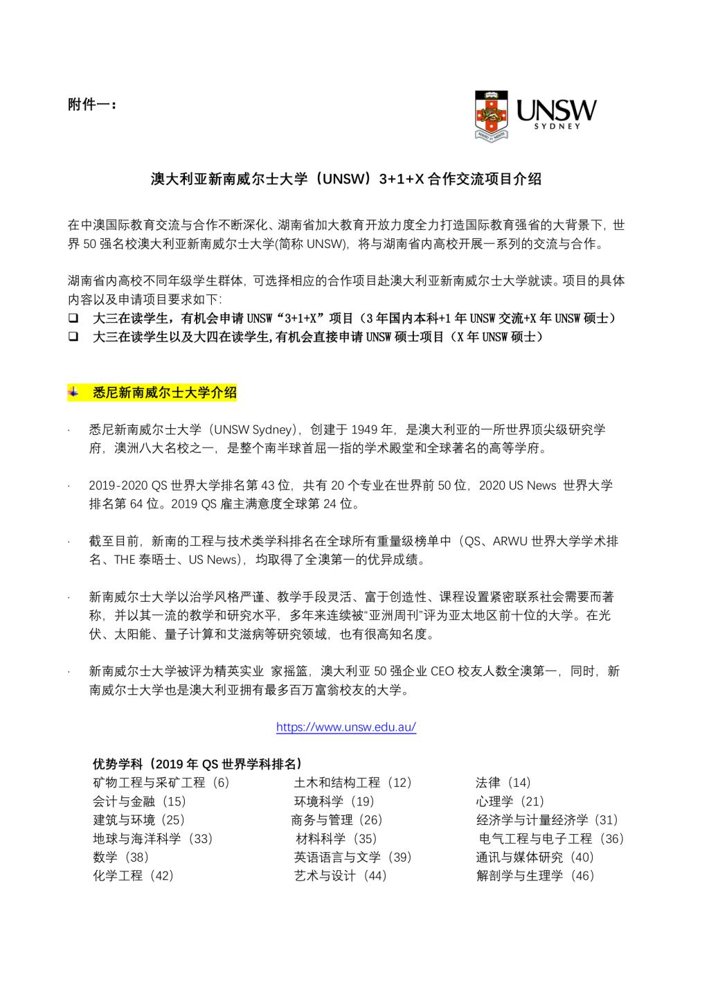 悉尼新南威尔士大学3+1+X交流合作项目流程说明
