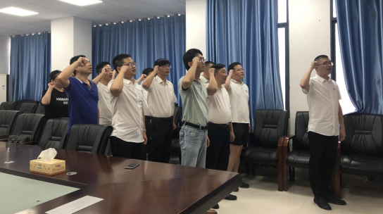 会议开始前,支部书记蔡建荣领誓,组织支部全体成员重温入党誓词。